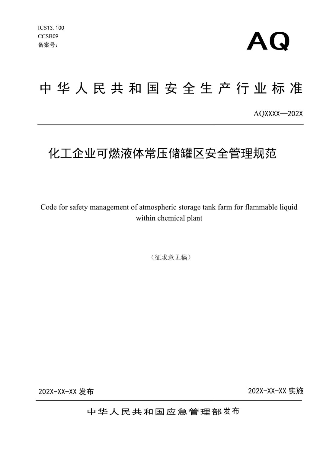 强制性行业标准《化工企业可燃液体常压储罐区安全管理规范(征求意见稿)》
