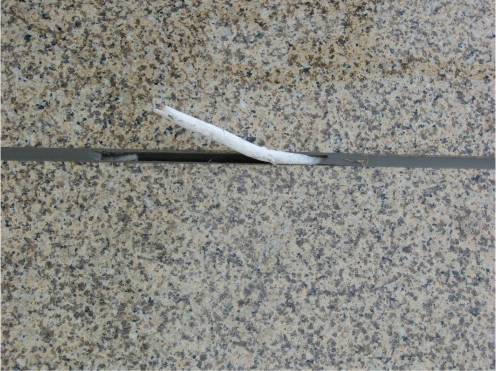 切开胶缝检查,石材拼接内填塞泡沫棒,胶厚度控制在3mm以上。