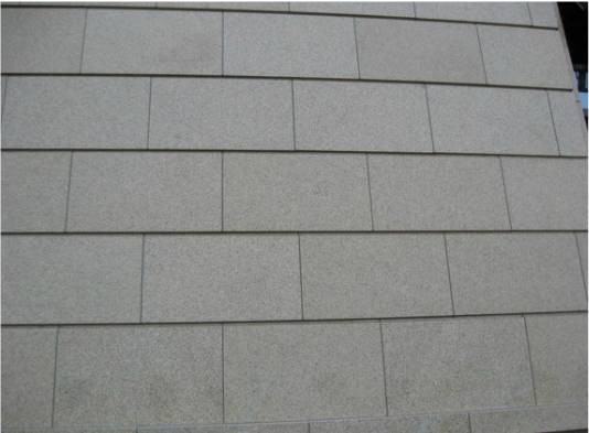蓝(绿)城干挂石材多采用来自新疆北部大漠的“卡拉麦里金”花岗岩,卡拉麦里金色泽金黄,色差小、石质好、不泛碱,外观彰显大气。