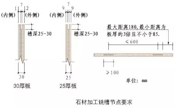 石材短槽必须机械开槽,保证槽缝宽度符合设计要求,严禁现场手提切割机开槽。