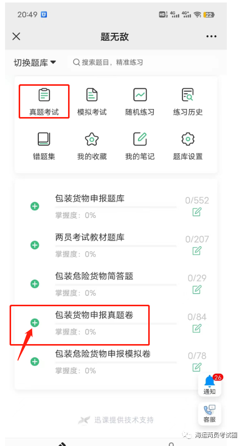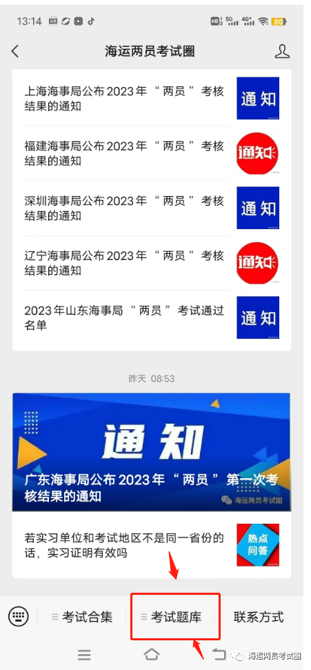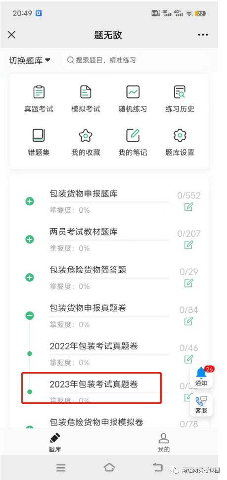 关注了本公众号的考生如图进入题库