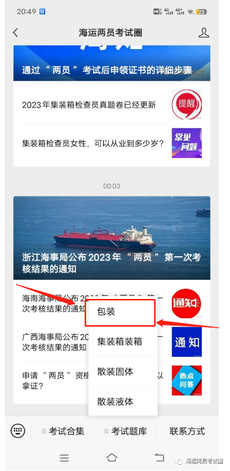 2023年8月17日“两员”考试中的科目之一,集装箱检查员、(2023年集装箱检查员真题卷已经更新)申报员(包装)科目真题卷已经更新完毕,因为每年“两员”考试完毕官方都不发布真题的,所以真题是经过海运两员考试圈公众号向参加考试的考生征集的,因为是征集考生考完回忆的真题,所以未免会有“瑕疵”,也就是不可能完整,全卷77题中征集了38题,全部已经更新进去题库,大家可以进去刷题,如果有哪些不正确需要修正的,欢迎踊跃提出,我们会第一时间修正。剩下的散装固体、散装液体两个科目真题,我们在尽快整理中,更新后也会在公众号通知大家。