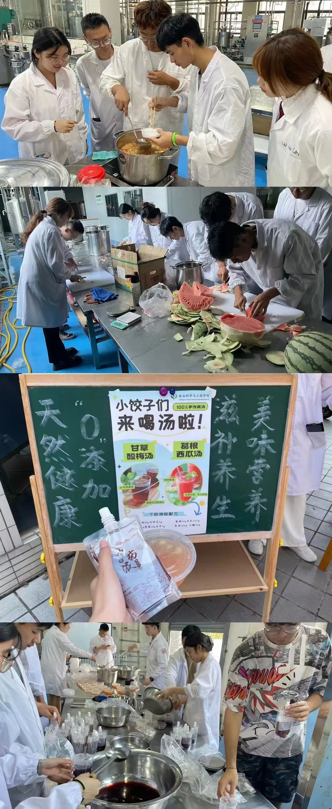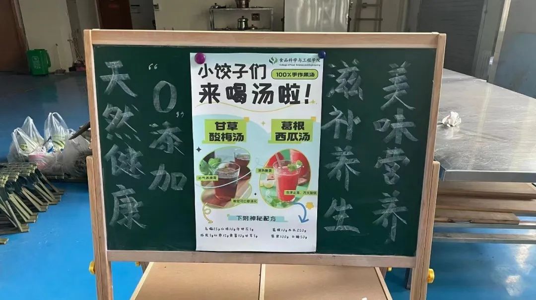 饺子们无畏前行,学长学姐做的葛根西瓜汤、甘草酸梅汤为你们保驾护航。