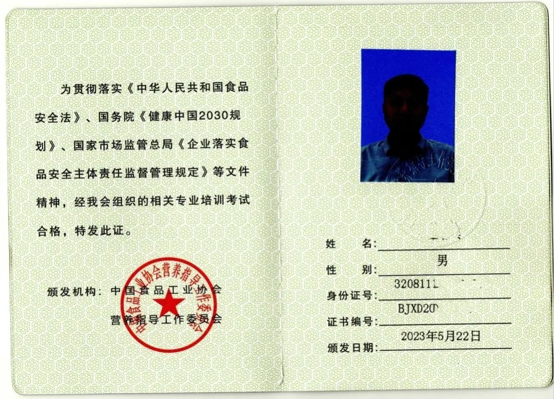 该证书持有者在食品行业内通常都会受到更多的关注和瞩目,备受业内尊重和推崇。