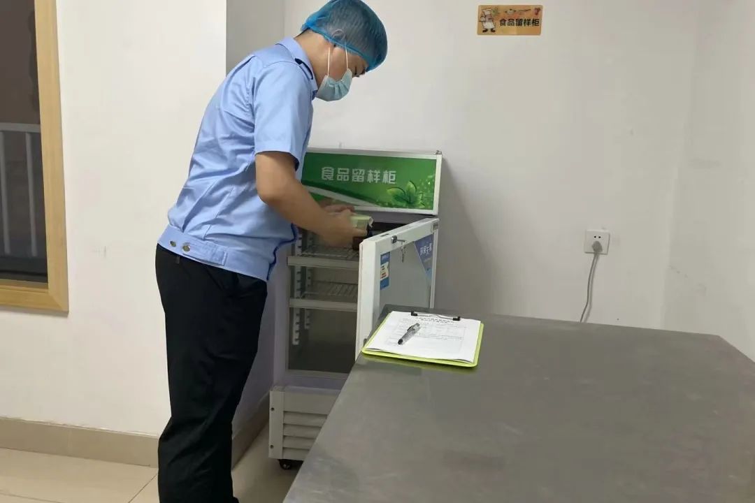 检查小组实地查看了幼儿园食堂的设施设备、操作间、粗加工间、消毒间、配餐间、食堂仓库等硬件设施,同时对食堂从业人员健康情况、各项记录有无规范填写、食品留样情况、明厨亮灶与厨房的环境卫生等方面进行了全面检查。