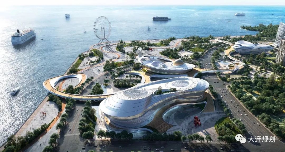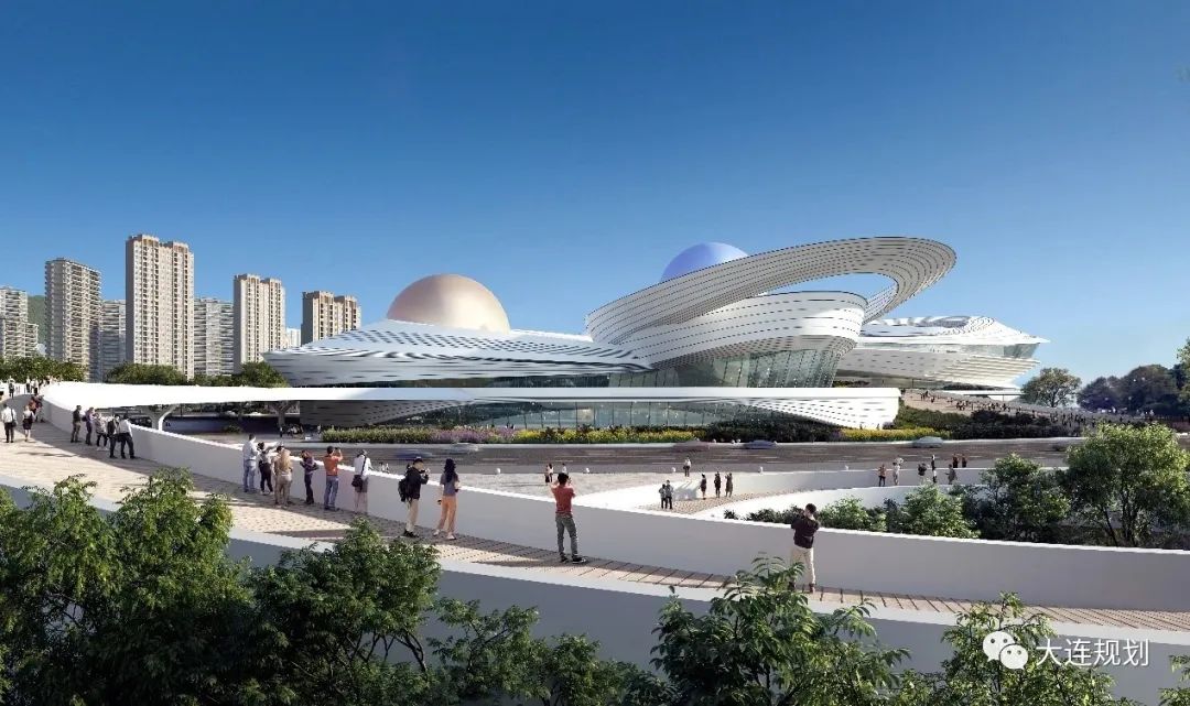 规划设计重点整合周边景观资源,将山、海、公园景观引入项目内加以利用。场馆以优美流畅的曲线和光华圆润的建筑形体体现大连的文化和民俗风情。