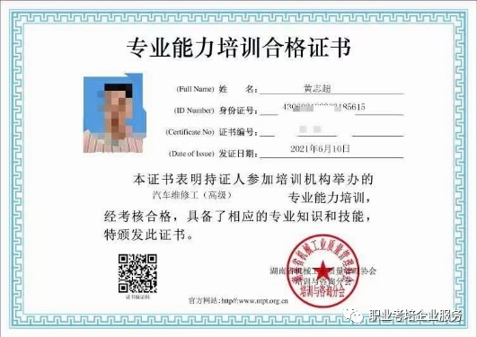 机械工业行业技能培训合格