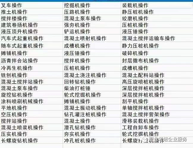 报名专业:挖掘机、装载机、平地机、铲运机、汽车式起重机等上百工种