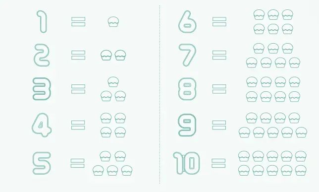 数字+蛋糕的超萌设计,帮助孩子识别数字。数字模型能够将抽象的数字“具象化”,经过反复的以数认量和以量认数,提高孩子对数字的熟悉程度,让孩子理解数字的含义。