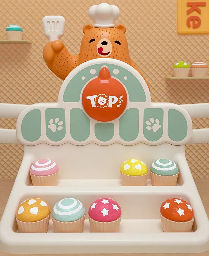 小熊造型,精致蛋糕、卡通数字等细节,营造浓厚的商店氛围,增强孩子角色代入感。