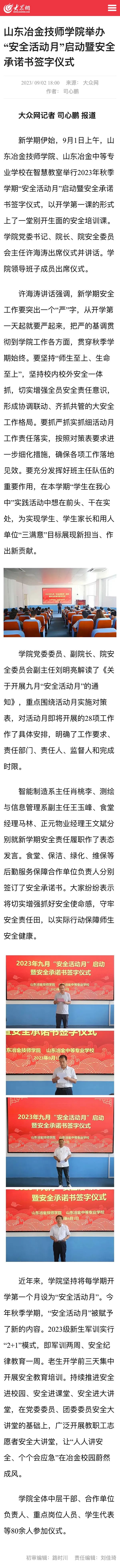 大众网 ▏山东冶金技师学院举办“安全活动月”启动暨安全承诺书签字仪式