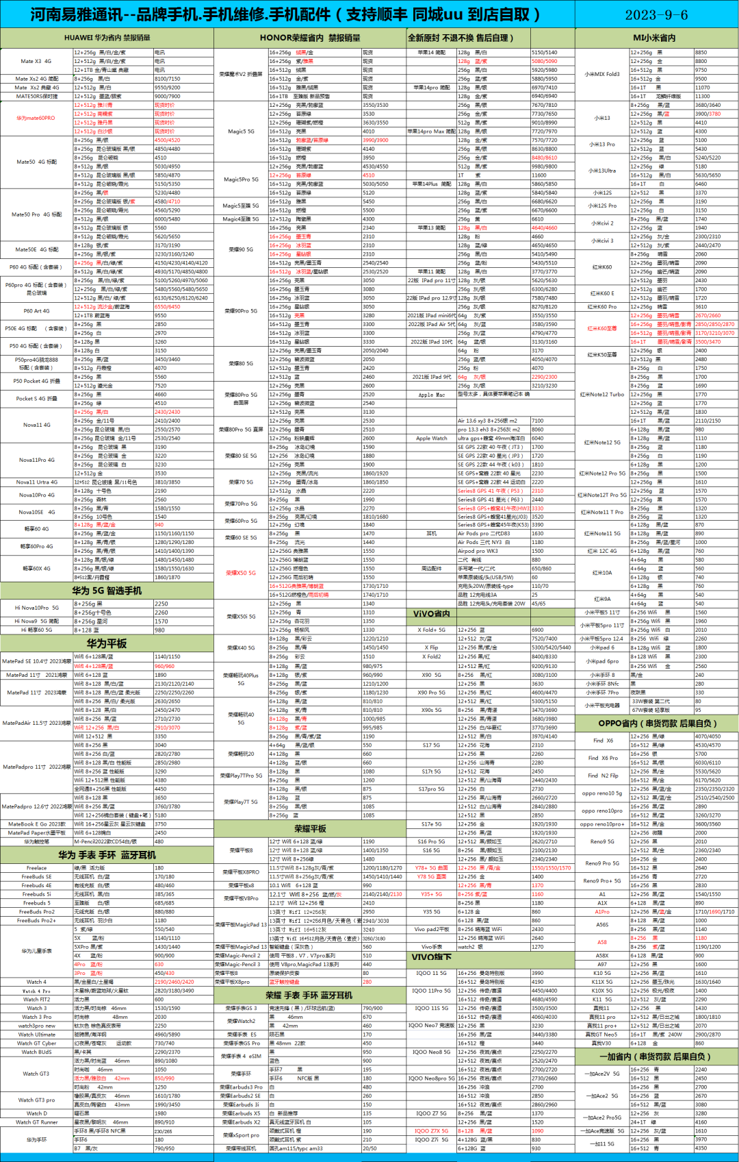 9月06日 智能机,电脑,原装配件报价