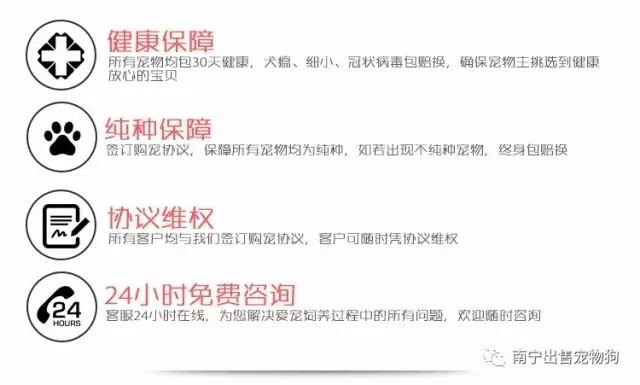 一保健康:所有犬只我们都在其出生后第26天,开始对它驱虫;第28天给它打第一针预防针(预防细小和犬瘟);45天打第一针5联预防针;65天第二针;85天第三针。购买后可以立即去宠物医院对它进行健康检查。