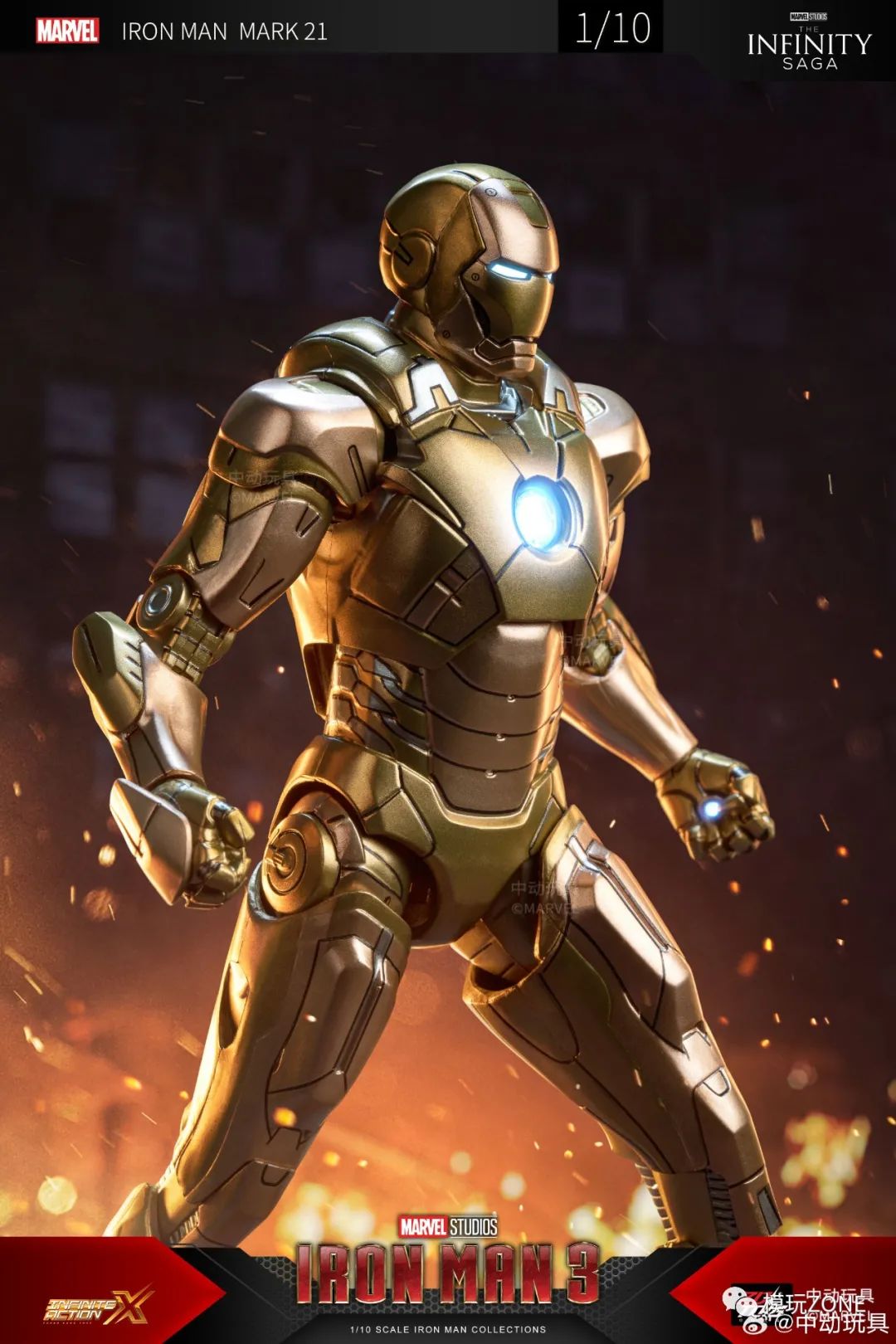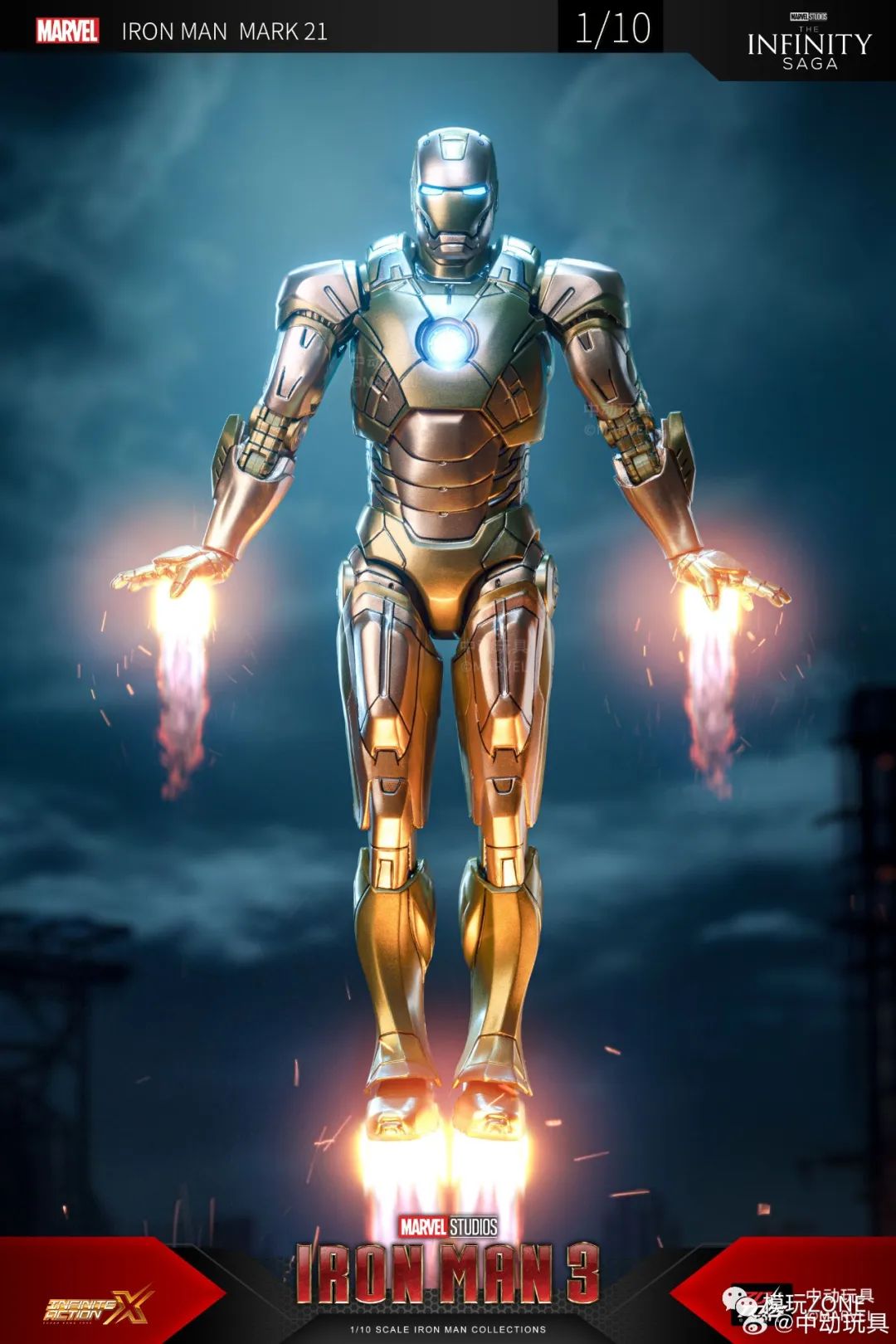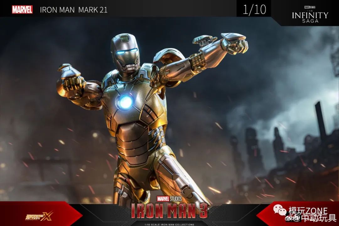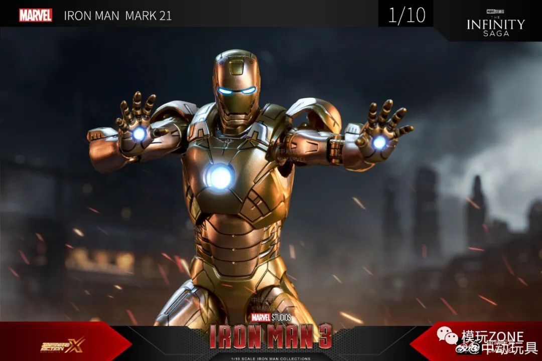 中动玩具:新品 1/10 <钢铁侠3> 钢铁侠 21号装甲 可动人偶官图