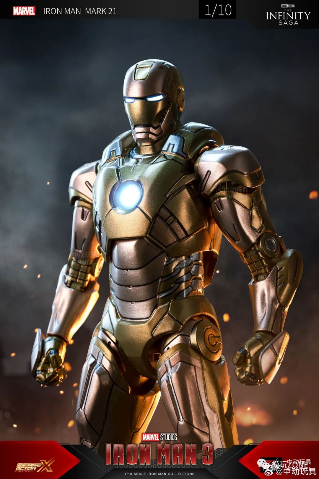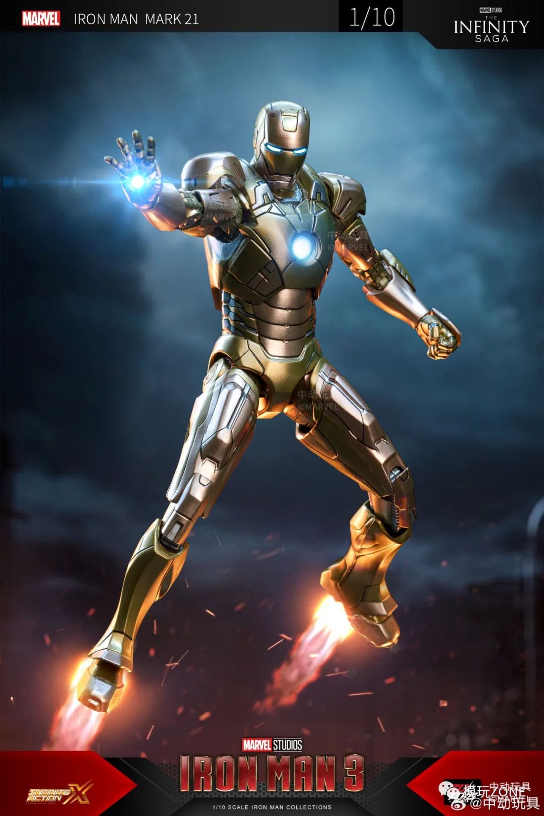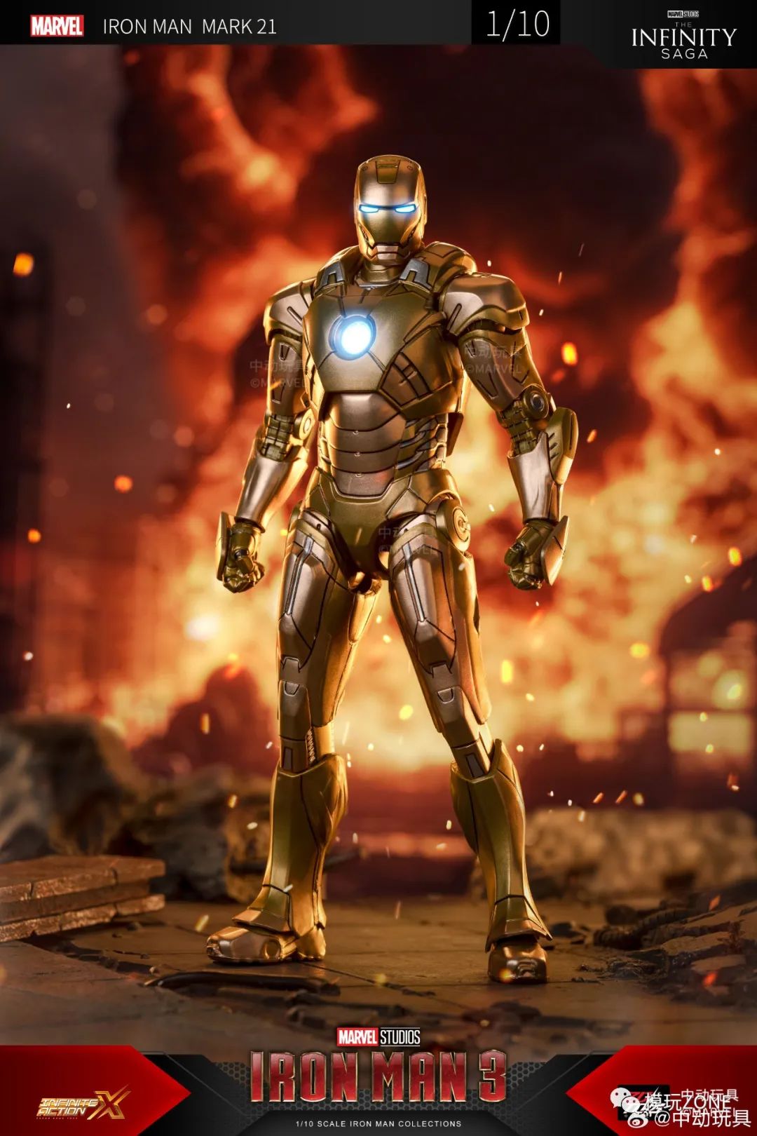 中动玩具:新品 1/10 <钢铁侠3> 钢铁侠 21号装甲 可动人偶官图