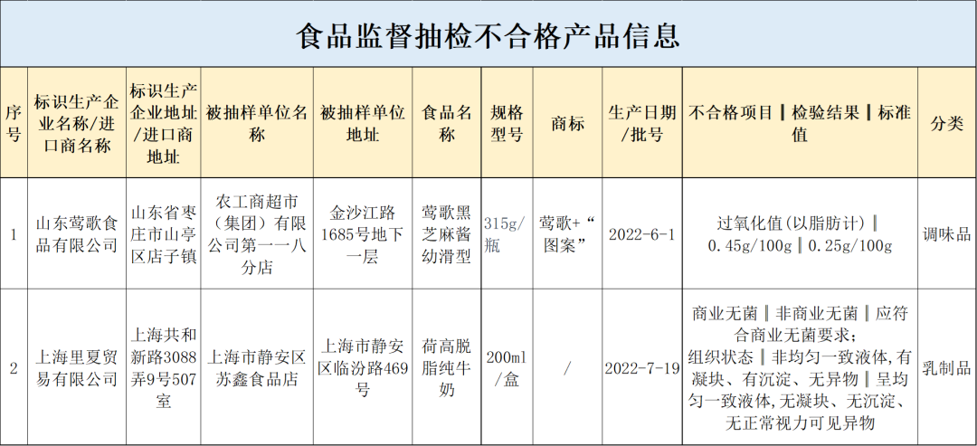 对上述抽检中发现的不合格产品,市市场监管局已要求相关区市场监督管理局及时对不合格食品及其生产经营者进行调查处理,依法查处违法行为,进一步督促经营者履行法定义务,并将相关情况记入食品生产经营者食品安全信用档案。查处情况由经营者所在地负责案件查办的区市场监督管理局按规定公开。