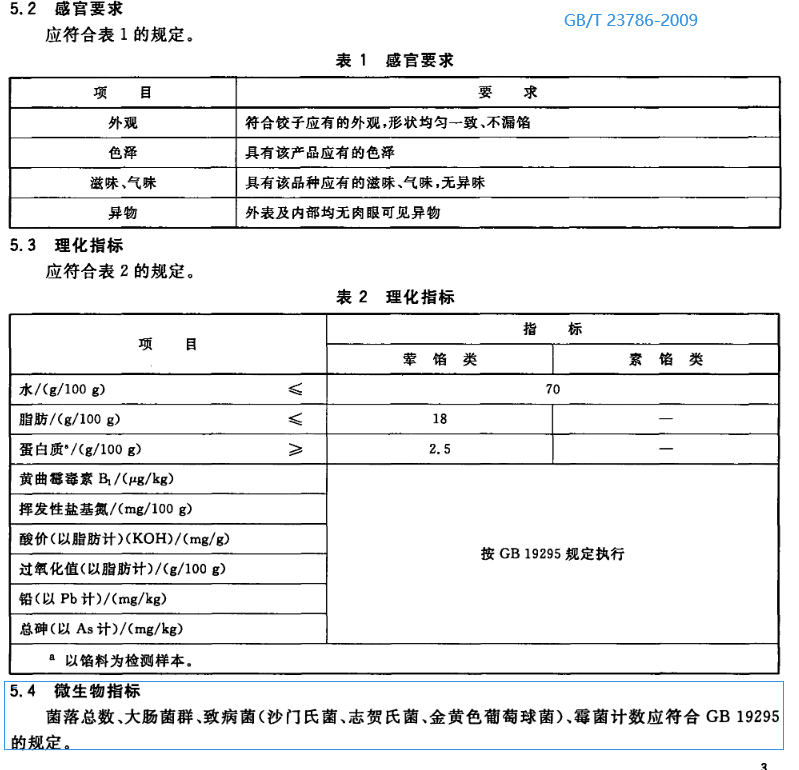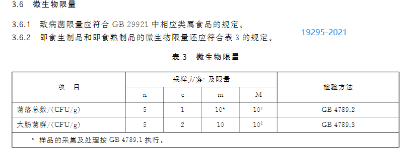 GB 19295-2021《食品安全国家标准 速冻面米制品》标准,标准要求如下: