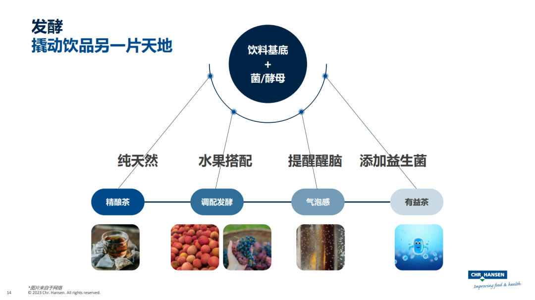 因此,发酵赋予食品饮品两个非常好的价值,风味的丰富选择和自认而然的健康价值。