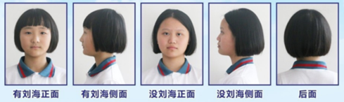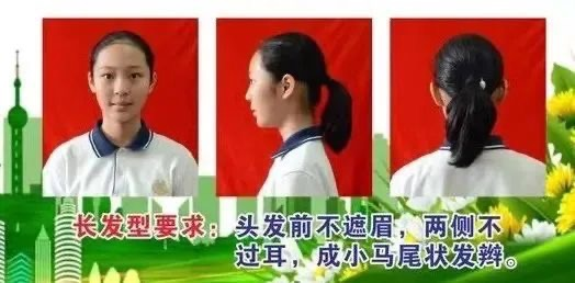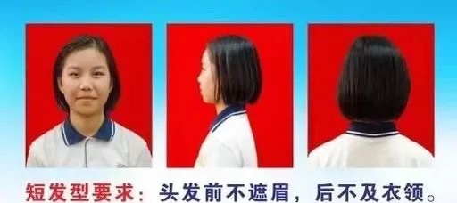 女生:以学生短装为标准,前不过眼眉,后不没衣领。