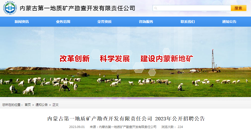 内蒙古第一地质矿产勘查开发有限责任公司 2023年公开招聘公告