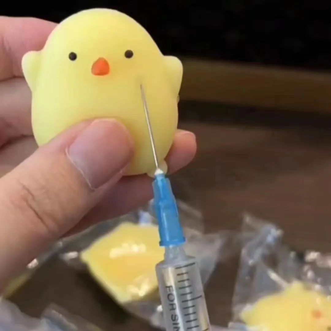 这种玩具的介绍是通过向橡胶小玩具里面注射水或者空气,达到小玩具身上鼓起泡泡,再挤掉,以达到解压的效果。