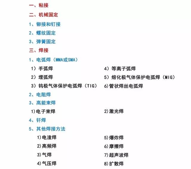 下面将具体介绍各常用的连接工艺:粘接、机械固定、焊接