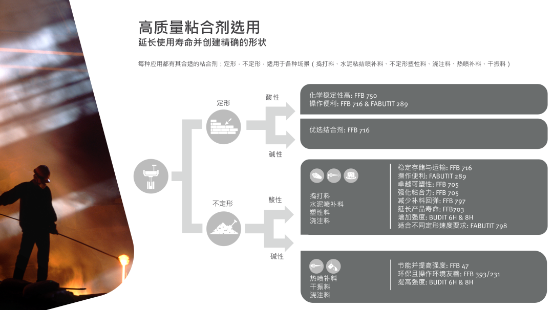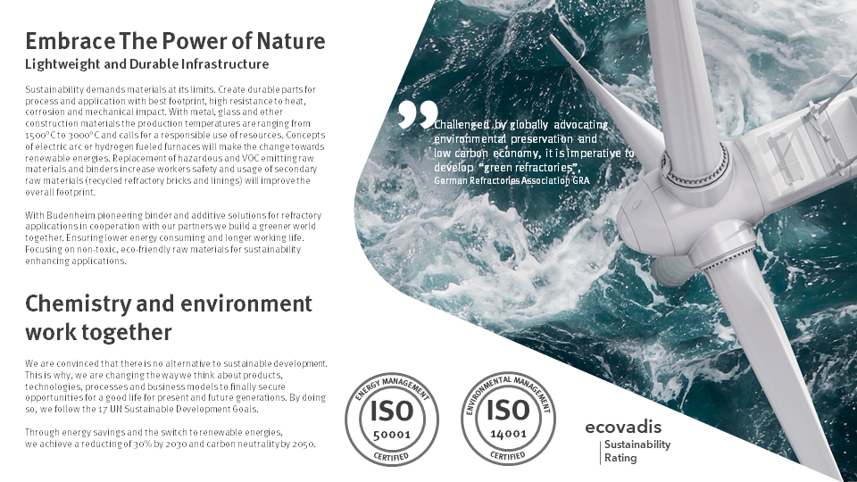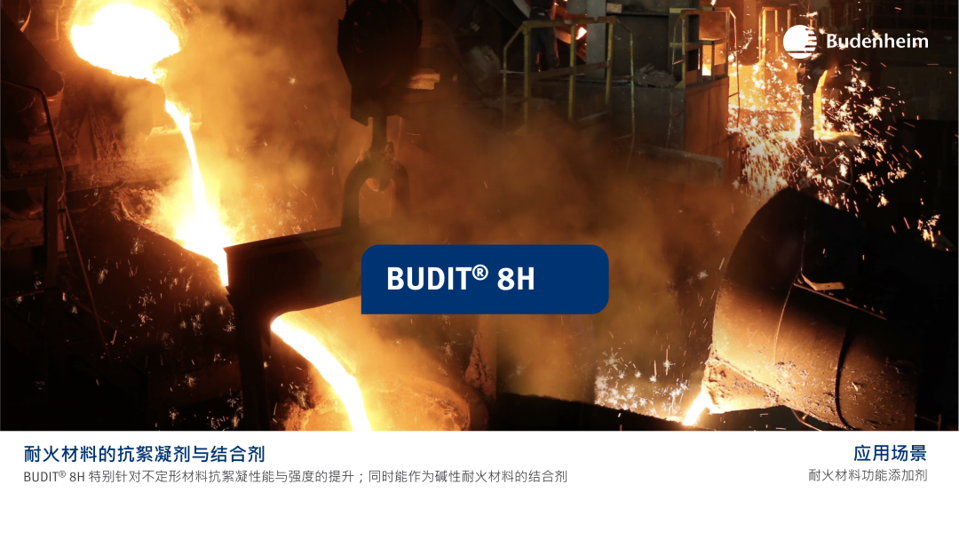 BUDIT® 8H 作为结合剂使用情况下,添加比例需小于2%。过度添加会为碱性耐火材料的耐火性带来反效果例如砖与砂浆。其高温时形成强结合键特性使其在高温应用场景极受欢迎。