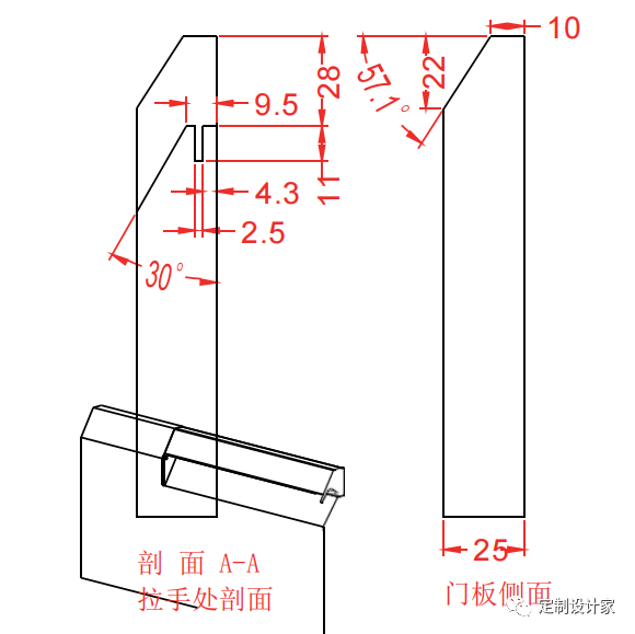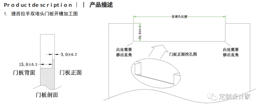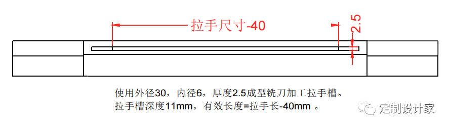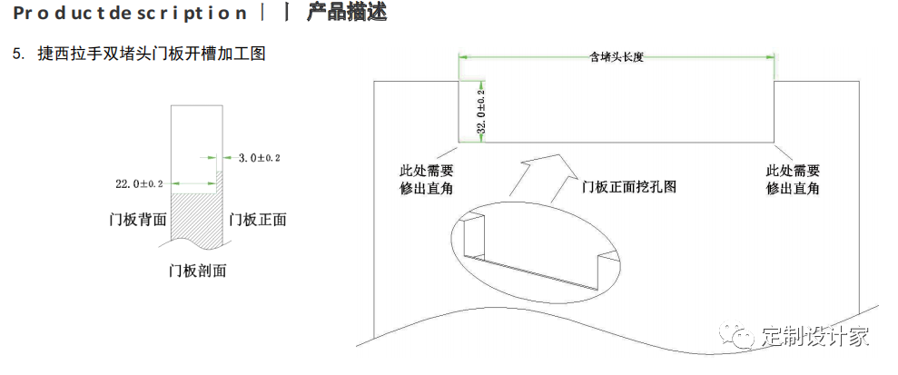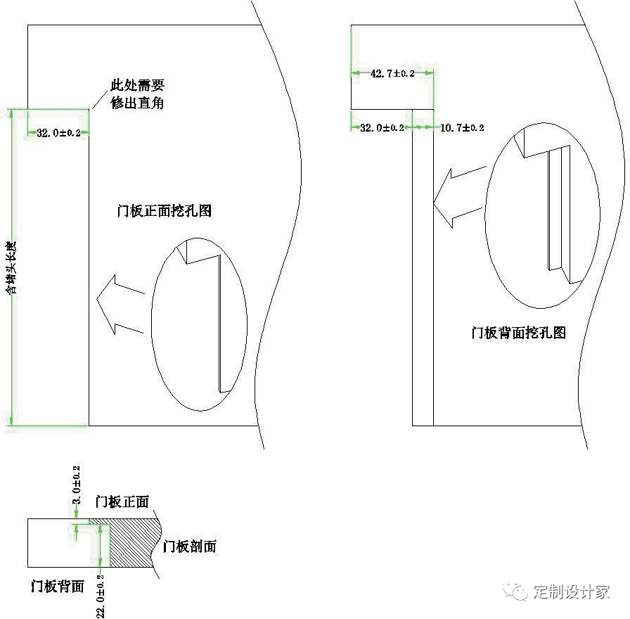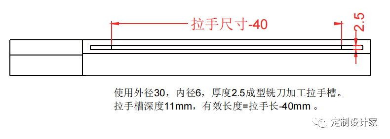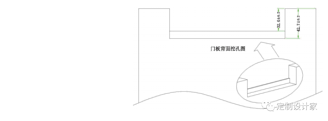 4、拉手尺寸定制,需根据拉手实物对开槽数据进行调整,切记不可在没见到拉手实物前加工门板。