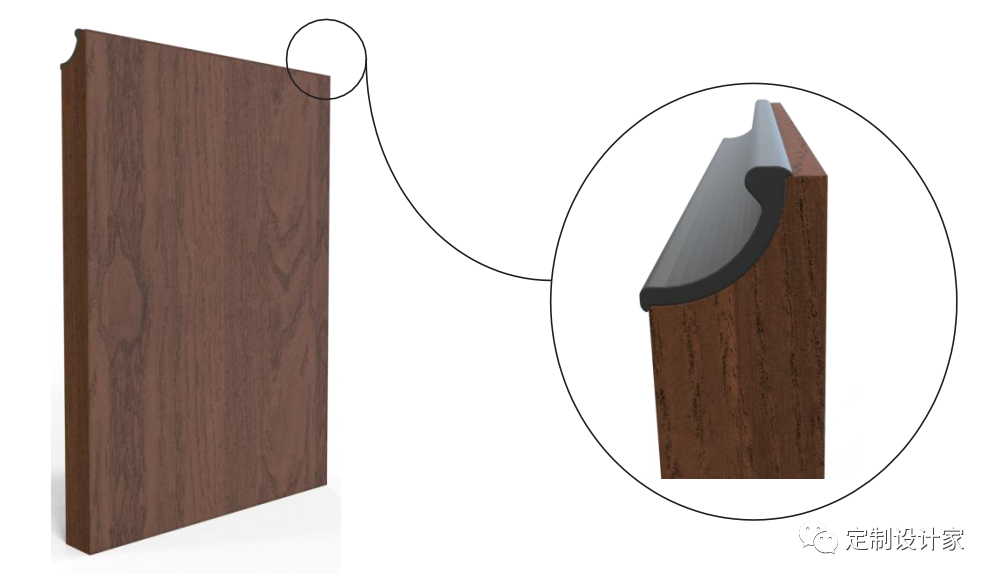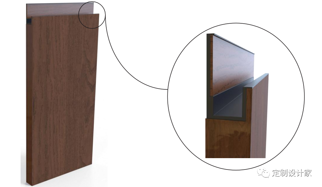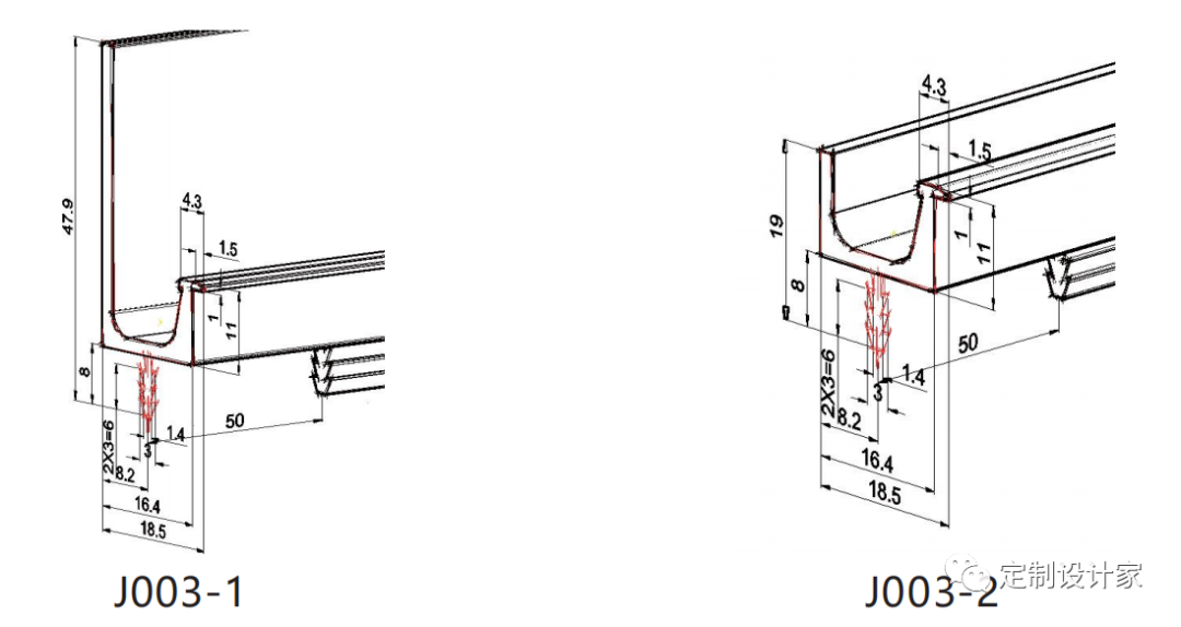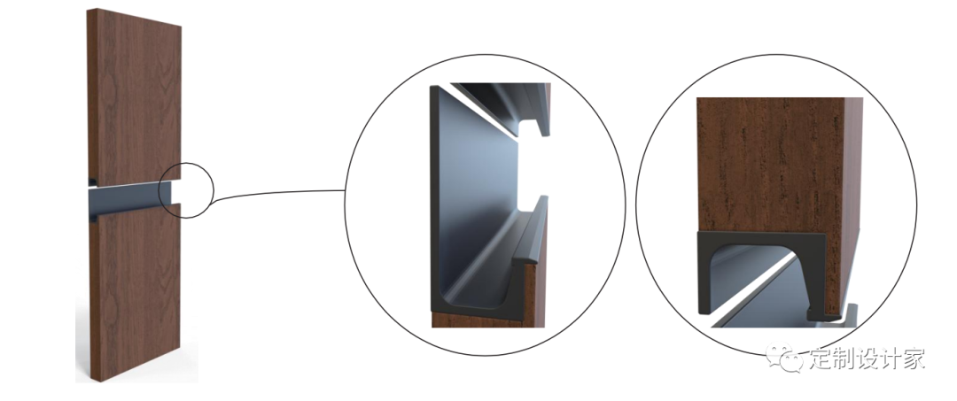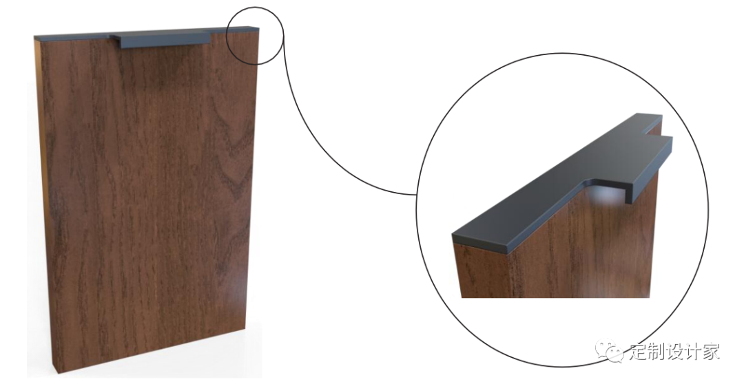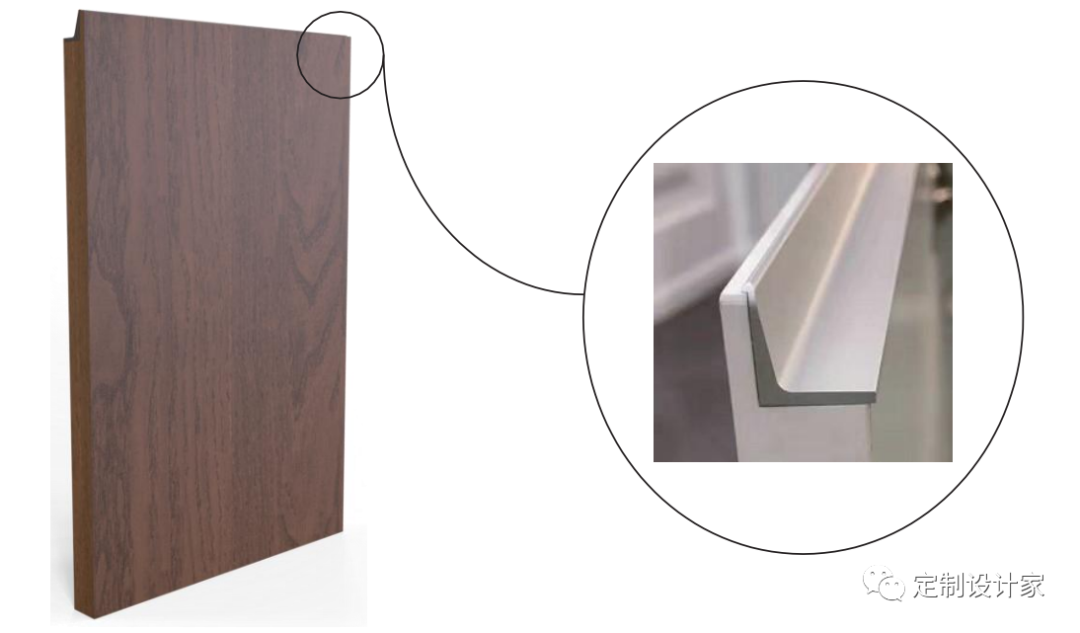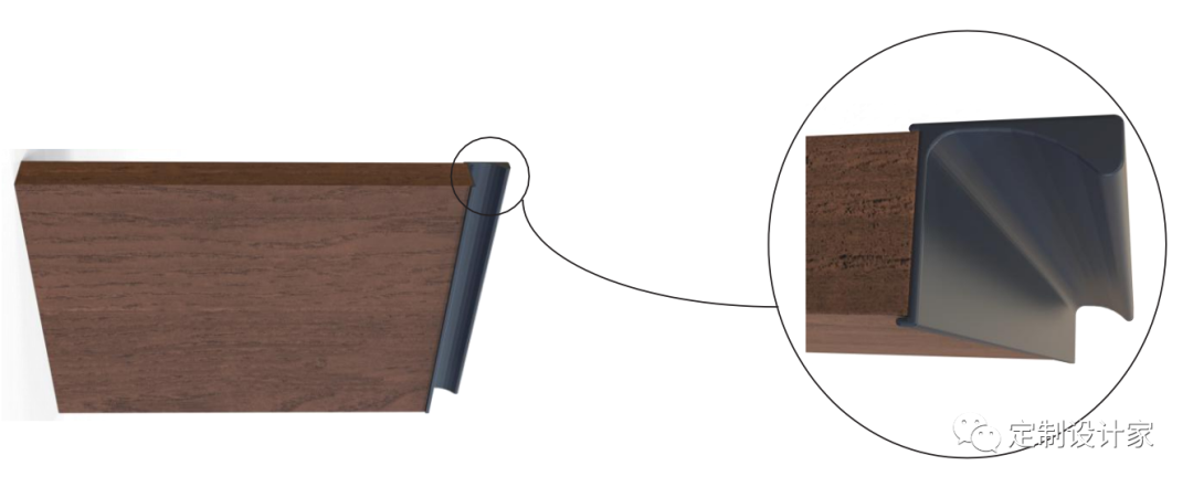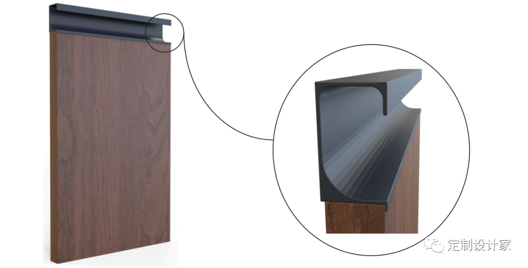 J008为封边拉手的一种,与门板配合使用,适配门板尺寸为18门板, 总长为3000mm,可整根定制可按段加工。