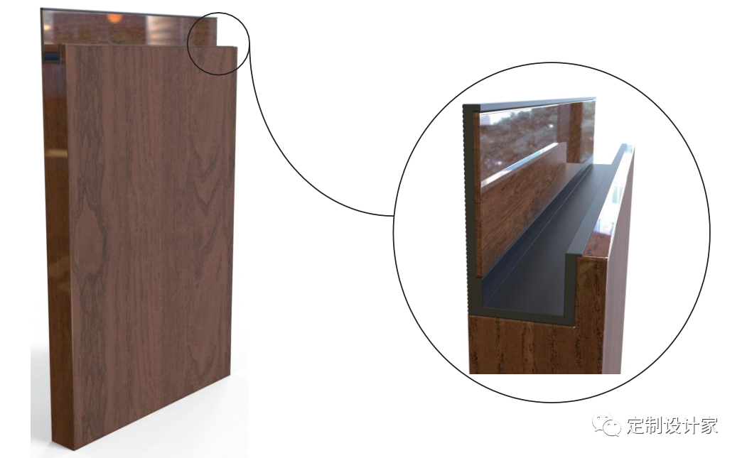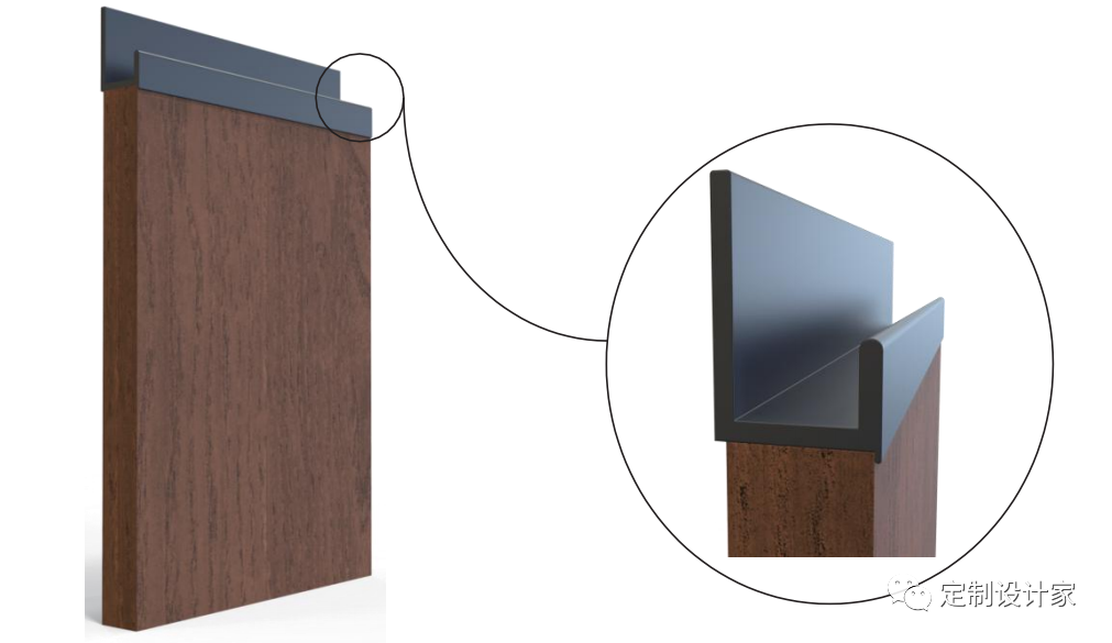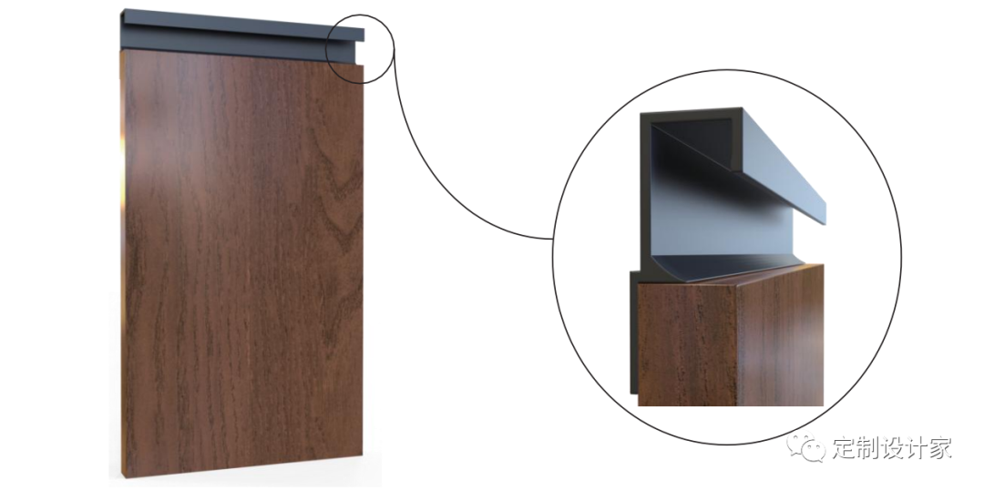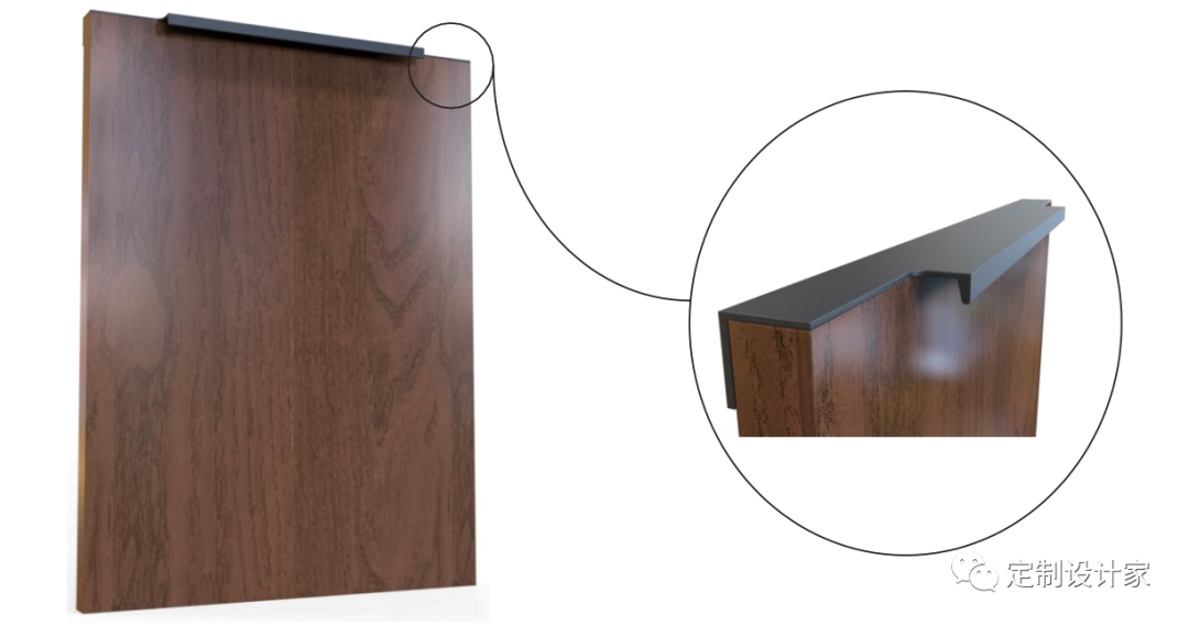 J082为封边拉手的一种,安装在门顶边位置,需门板开豁,适配18木质门板,总长为3000mm,可根据实际需求裁切。