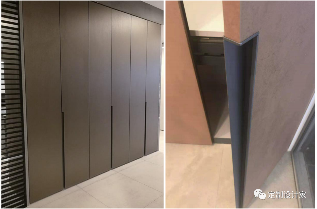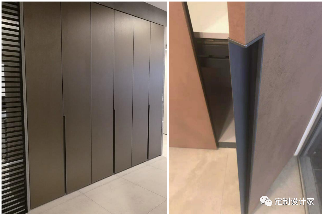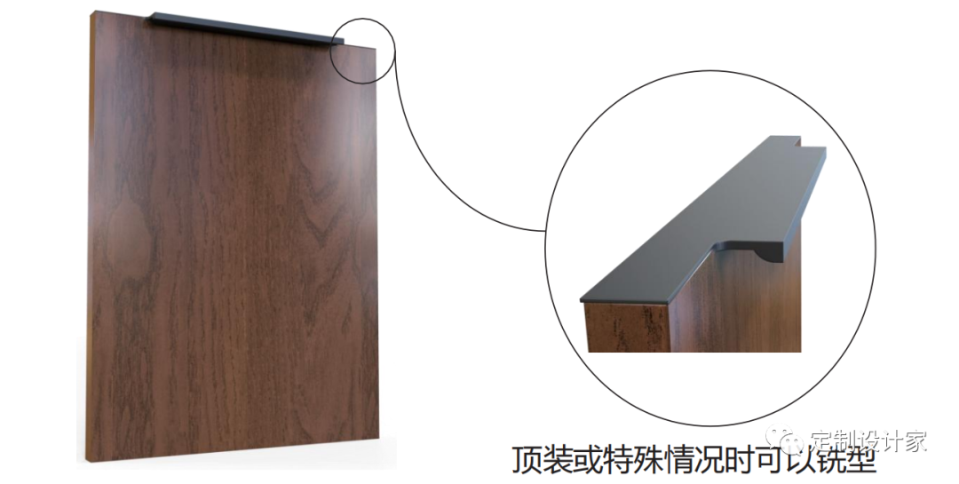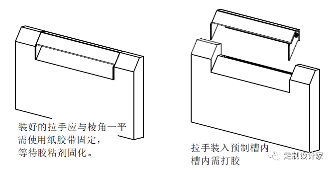 7、拉手推荐平装,推荐用于地柜对开门。吊柜及对开门安装需要先打小样确认效果。
