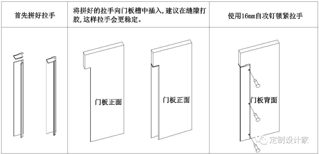 5、第一次选配此款拉手需要做完整的样快,确认安装效果。