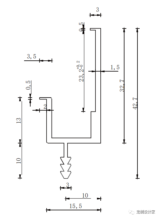 7、拉手平装立装通用此标准加工,立装需要区分上下面,避免拉手无法对准。