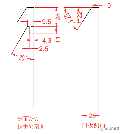 2、只适合 25mm 板材,其他规格板材此款拉手不适合。