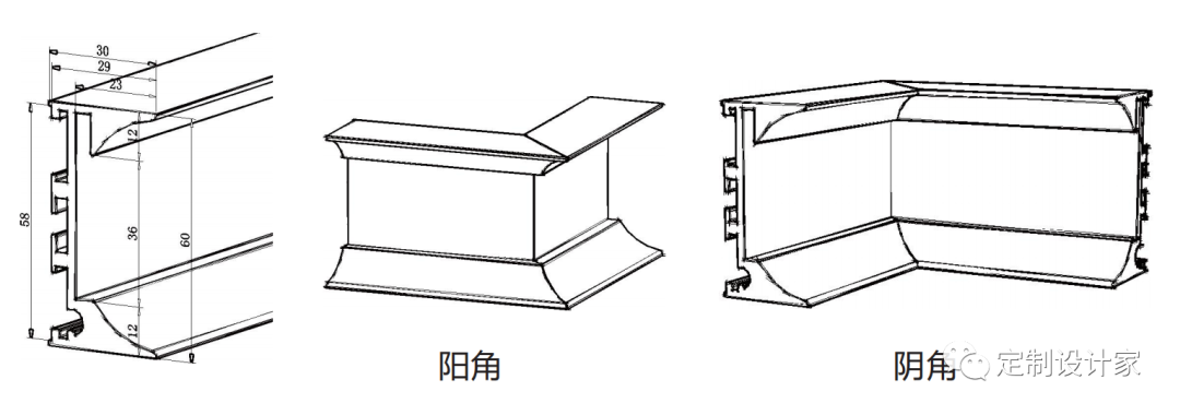 XM36为封边拉手的一种,安装在门板侧面,需门板开豁(两端不开透或开豁后封边),适配18木质门板,总长为2500mm,可根据实际需求裁切(顶端安拉手除抽屉外,需两侧至少铣掉50mm,侧边安拉手可不铣型,也可根据设计师需求任意铣型)。
