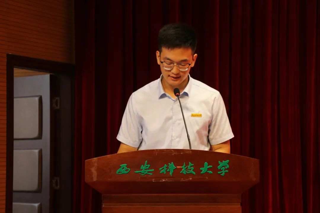 在校本科生代表秦许博和在校研究生代表杨梦娜分享了他们在校学习、科研以及参加实践创新活动的收获和感受,表达了对全体新生的美好祝愿。