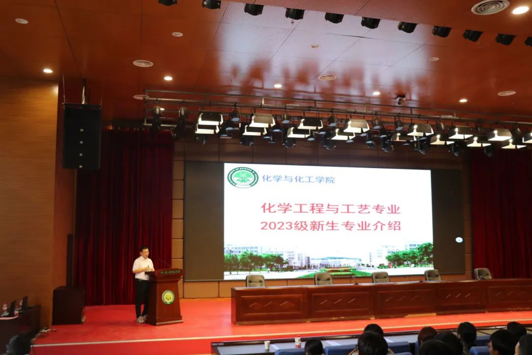 副院长贺新福从历史沿革、学科专业、创新平台、师资队伍、人才培养、科创竞赛等方面系统介绍了学院的综合办学实力和基本情况。副院长李振宣读了《化学与化工学院本科生导师制实施办法》和2023级本科生班级班主任名单。学院党委书记肖阳为2023级本科生导师代表和2023级本科生班主任颁发聘书。