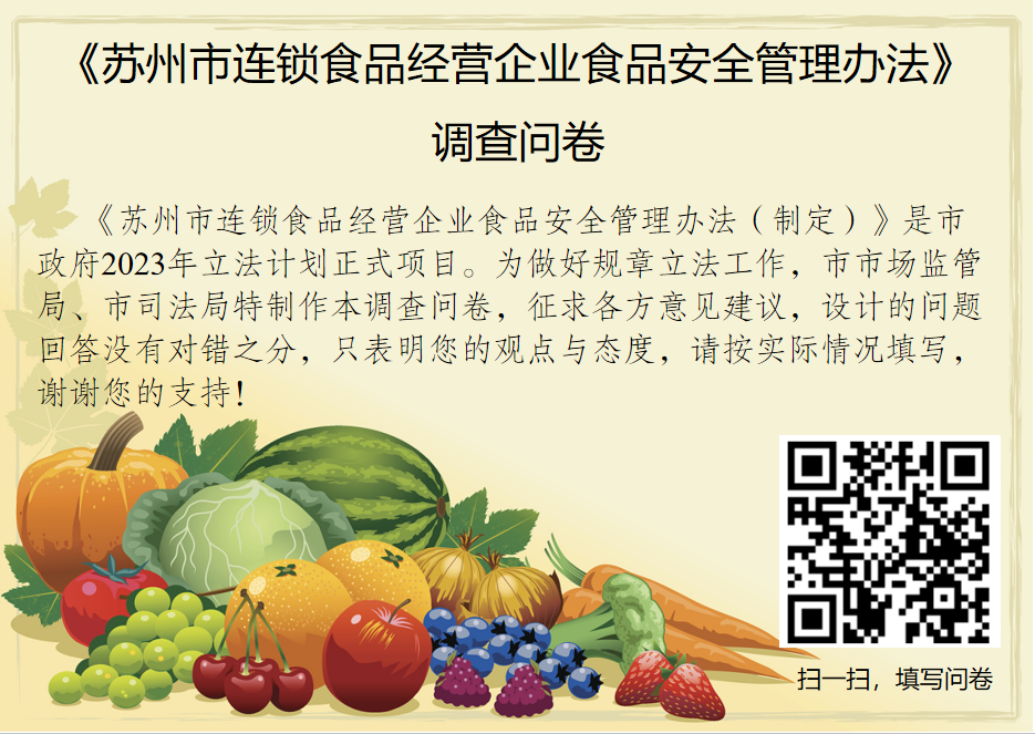 《苏州市连锁食品经营企业食品安全管理办法》调查问卷发布,等您参与!