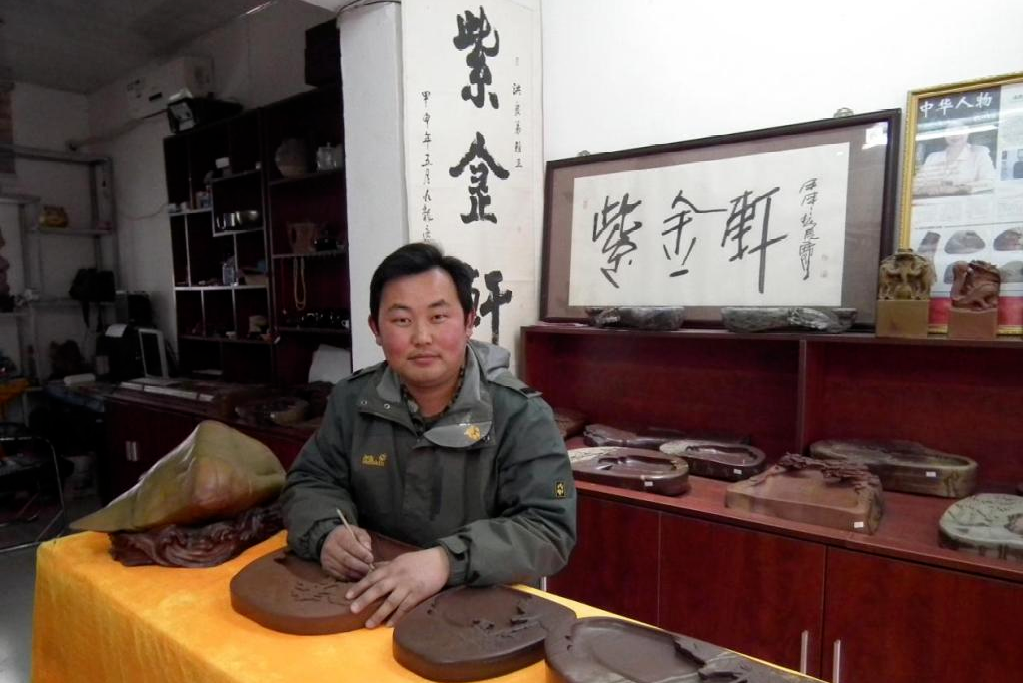 邱金保,安徽省高级工艺美术师、安徽省工艺美术名人,自1993年起便学习制作紫金砚技艺。2020年10月安徽省传统工艺美术保护和发展促进会,评其为安徽省工艺美术大师“示范工作室”。2022年12月淮南市谢家集区工会授予其“蔡楚工匠”称号。