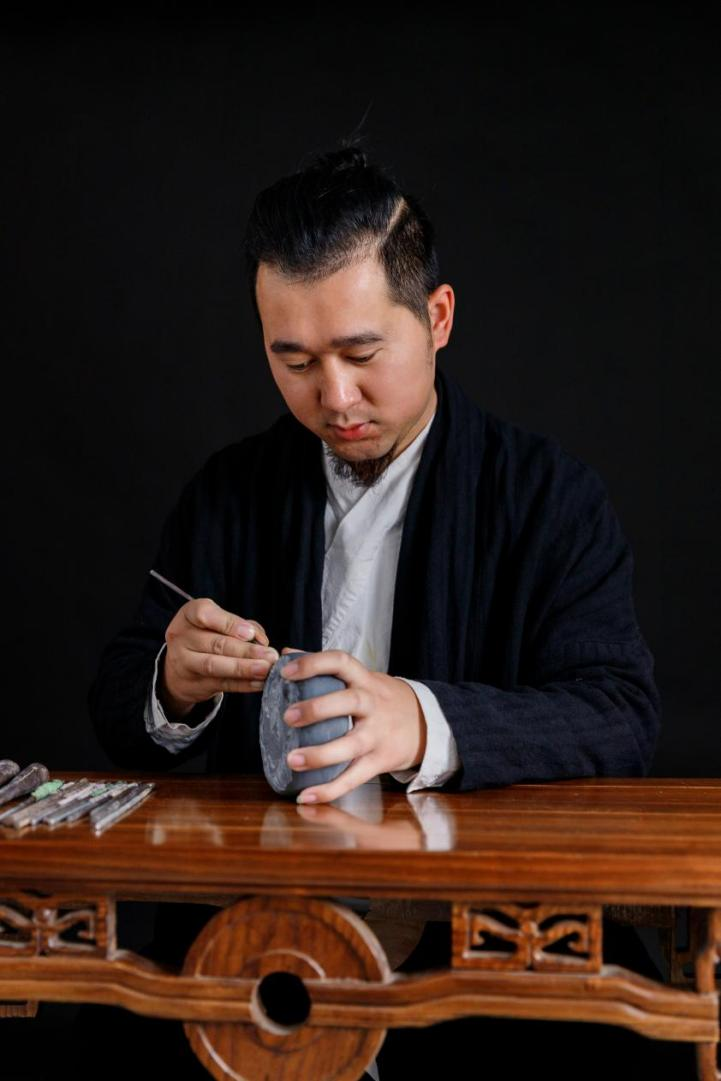 孙涛,歙砚非遗代表性传承人,江西省工艺美术师、国家百匠名师、江西省砚专业委员会副秘书长。生于歙砚原产地江西婺源,2010年从艺至今,其作品多次获得国家、省级奖,他的作品馆藏于江西省博物馆、省美术馆等,且漂洋过海被世界各地藏家收藏。