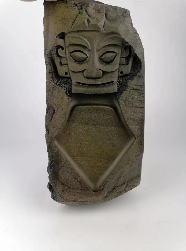 神秘的三星堆古蜀文明,荣获上海首届文房雅器作品展金奖。观四川广汉三星堆博物馆青铜面具有感而创作。世界九大奇迹之一的三星堆遗址是一处距今三千多年前的古蜀文化遗址,发现了城墙遗址和大量精美文物(奇形怪异的青铜头像面具等),有力地证明了三千年前古蜀国的存在和中华文明起源的多元性。