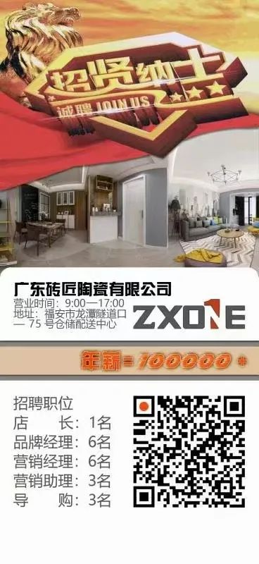职位描述:福安砖匠瓷砖批发! 招贤纳士 伯乐识良马,明主觅贤才。口齿伶俐,善于沟通。 只要你敢做,敢试,有能力工资由你定! 1、招聘业务精英区域经理30名,(男女不限30岁以下)保底薪资2800+满勤300+业绩提成,只要努力,肯吃苦,月入6000-10000不是梦,提成当天结。 2、仓库搬运工2名工资5000+满勤奖300也可加业务提成,月薪8000-10000元也不是梦。工作时间上午8点到12点,下午1点30到5.30。月休2天。 3,福利:生日福利、舒适办公环境、不定时团建、季度聚餐。 联系人张先生 电话:18760236923, 15057071108