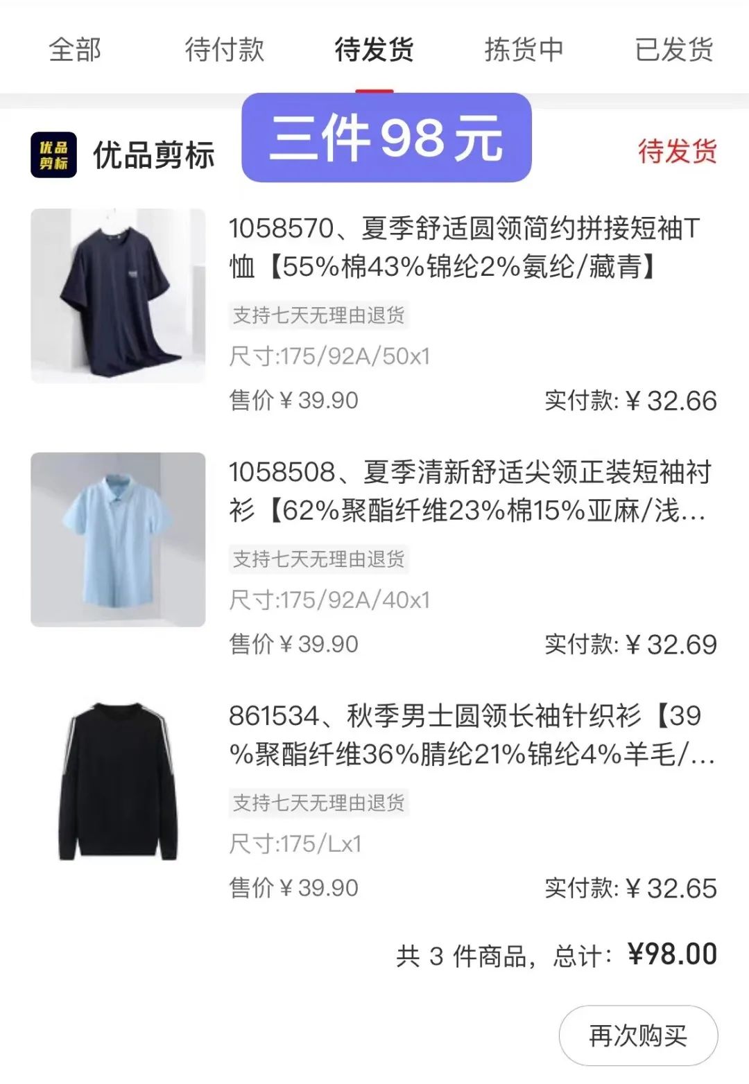 所有衣服都享受7天无理由退换货