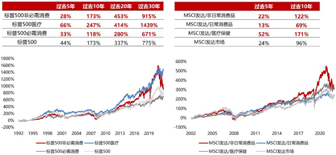 回顾欧美和发达国家市场,大消费板块在10年甚至更长的维度里,长期跑赢其他行业。