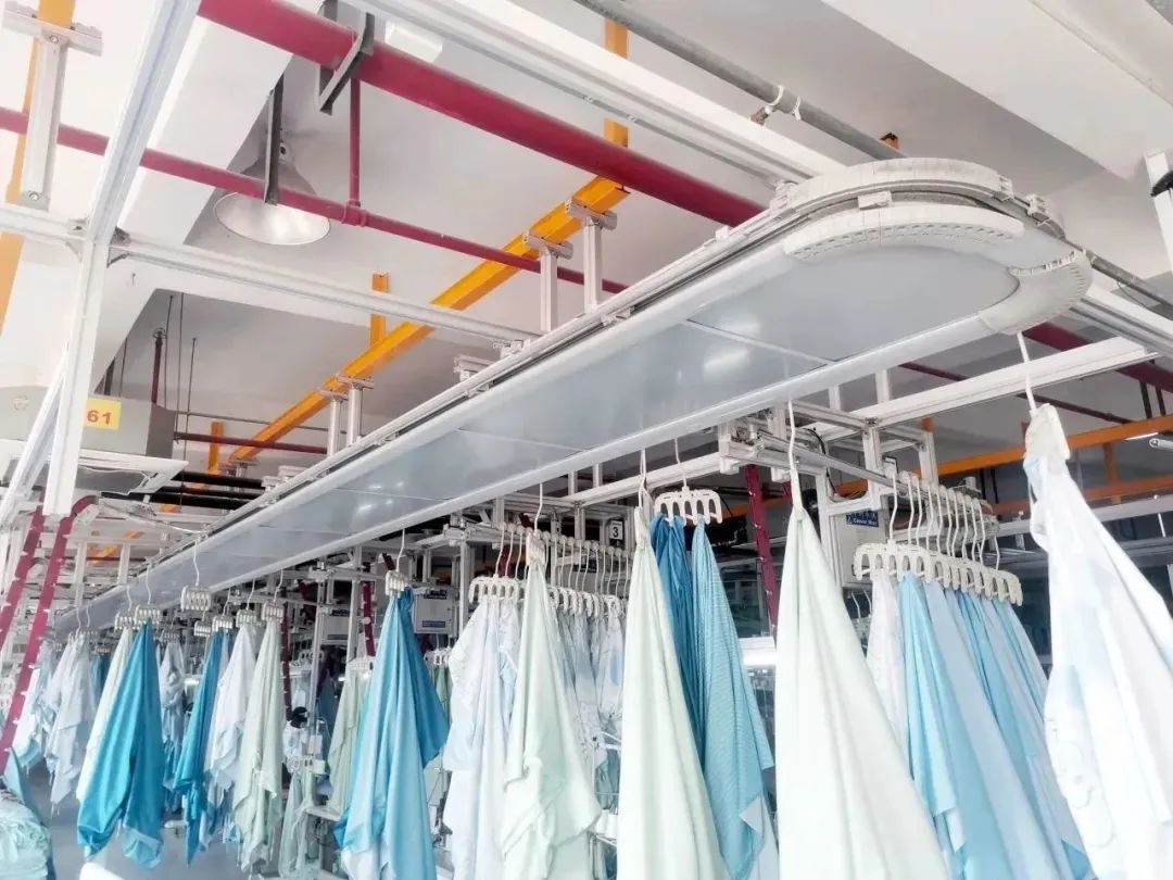 明兴科技吊挂系统在生产时用单件流取代整包流,让工人可以按照指示和流程生产即可,这样即便在生产过程中遇到紧急的“小批量、多品种”订单来插单,可以从容增加或删减工序,而不影响整体效率。