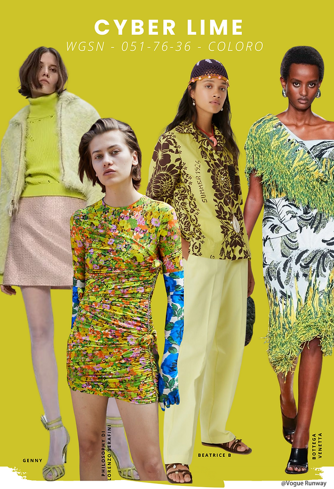 这种热情洋溢的酸橙作为一种性别包容、多巴胺的亮点,在高端和青年时尚领域越来越受到关注。它将进入健身、户外、鞋类、配饰和童装类别,譬如运动装、游泳装、度假装、外套等可以轻松融入季节性印花,包括格子、条纹、花卉和抽象图案,用作强调色或个性纯色。这种充满活力的明亮效果非常适合虚拟宇宙美感、虚拟内饰和游戏产品。它还可用于家居室内装饰、零售、包装、科技配件、电动自行车和踏板车。