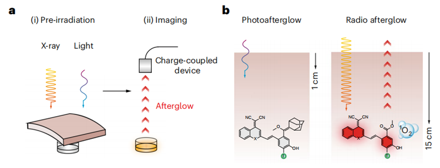 光学显像剂已广泛应用于生物学和医学领域,为诊断和光疗提供了重要手段。与激光相比,X射线具有更深的组织穿透性,允许将高能量光子传递到人体深层病灶部位,用于诊断成像和癌症放疗。X射线最近被用来代替激光来诱导余辉成像具有独特的优势。然而,此类放射性余辉成像(Radio
