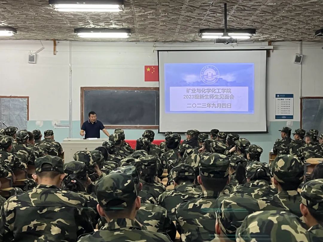 为帮助2023级新同学尽快适应新环境,深入了解学院,制定学业规划。9月4日晚,矿业与化学化工学院在工程楼224教室召开2023级新生见面会。矿业与化学化工学院党总支书记张阳、院长郭文彬、副书记毕瑞金、副院长敖日格乐及相关科室负责人、2023级班主任、辅导员、156名新生参会。会议由矿业与化学化工学院团学办主任蔡庆生主持。
