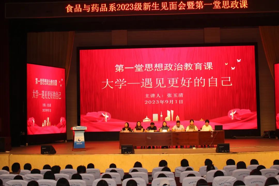9月1日下午,食品与药品系于学术报告厅举行2023级新生见面会暨新生第一堂思想政治教育课,系部负责人张玉清教授为2023级全体新生开启新学期第一堂思想政治教育课“大学-遇见更好的自己”。