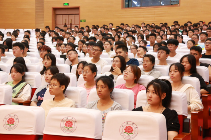 林枫、张凤荣、王振宇、田涛、王庆美老师依次从学院发展、专业教育、安全教育、心理健康教育、思想政治教育及校史教育等方面对新生进行入学教育。